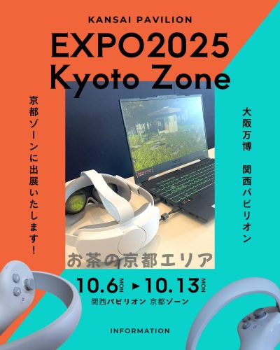 に出展いたします。小さなスペースではありますが、VRゴーグルを使い仮想空間でお茶をお楽しみいただけます。体験された方にはオリジナルキャラクター茶つぼちゃんと写真が撮れるARもご用意しております。関西パビリオンにお越しの際はぜひお立ち寄りくださいませ。